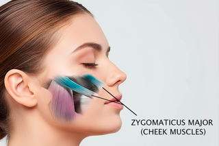 • Through Electrical Muscle Stimulation, low-voltage electrical currents help firm, strengthen, and tone the Zygomaticus major (cheek muscles).