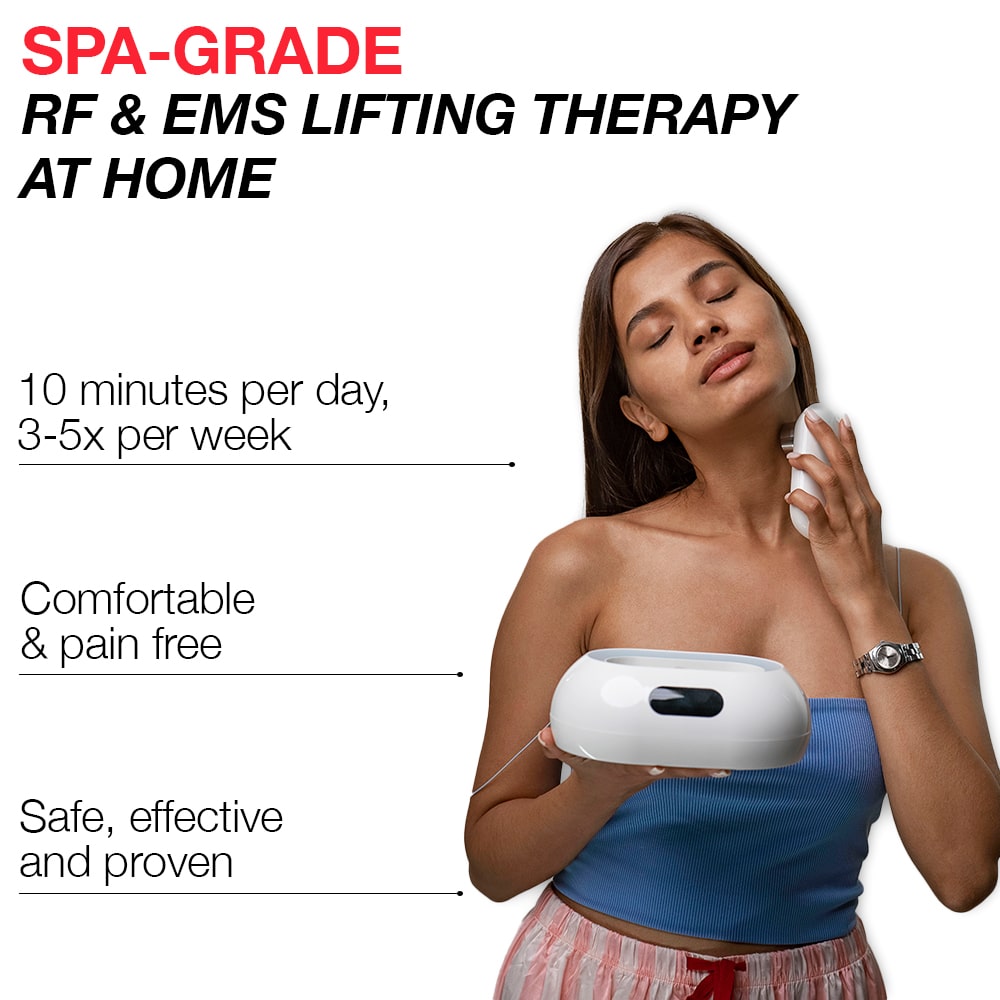 The home RF & EMS lifting device provides for the same duration of each procedure.